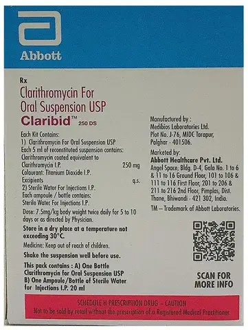 Biaxin Oral Suspension is an antibiotic medication. It is given to children to treat a wide range of bacterial infections targeting the ear, throat, teeth, lungs, heart, skin, and gastrointestinal tract. It also helps treat bacterial infections that can occur in children with HIV due to their weak immune systems.